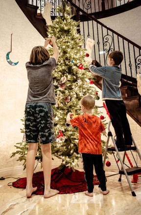 Each year I have visions of us all peacefully decorating the tree together, listening to Christmas music, laughing and enjoying the magic of Christmas. Then each year, it turns out a little more stressful then I had imagined. No matter what we can't control the situation with so many kids, personalities and variables. A dropped/broken ornament, someone taking too long on the ladder, fighting over who get's to put up a certain ornament, you know there is allllways something kids can find to argue about haha. Or is it just my boys?