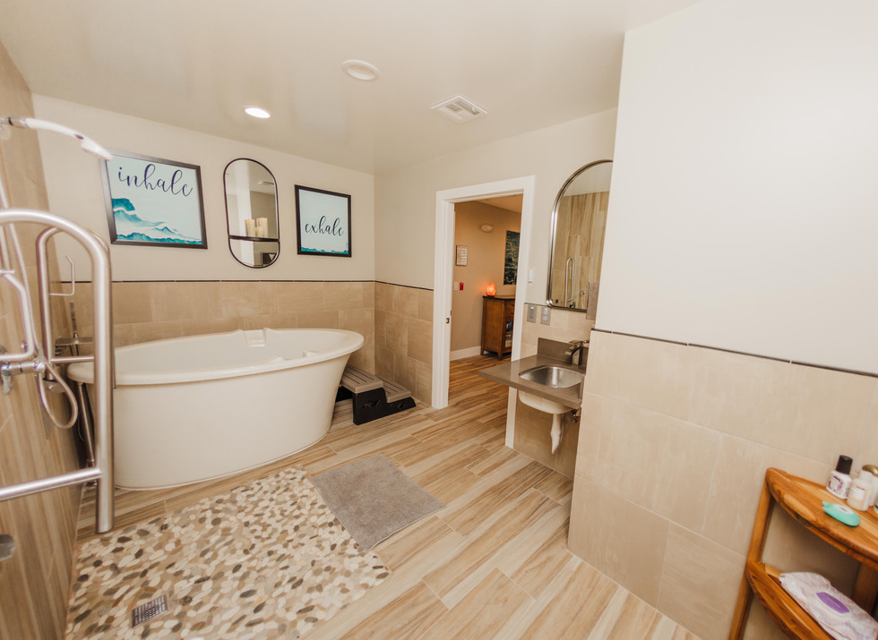 If you are considering a less clinical atmosphere of a hospital but also aren’t interested in delivering at home, you may want to consider Serenity Birth Center. With private serene birthing suites, soft lighting, showers, giant birthing tubs, lots of space to move around, refreshments and a small kitchen for families to use while supporting mama in labor are some of the perks of delivering at Serenity birth center.